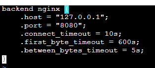 Open the file "/etc/varnish/backends.vcl" in a text editor and replace the value of ".host" with the IP address of the localhost and the listen port of the Varnish backend. This is the server that provides the content that Varnish will accelerate. Also, replace the value of ". port" with the listen port of the web server.