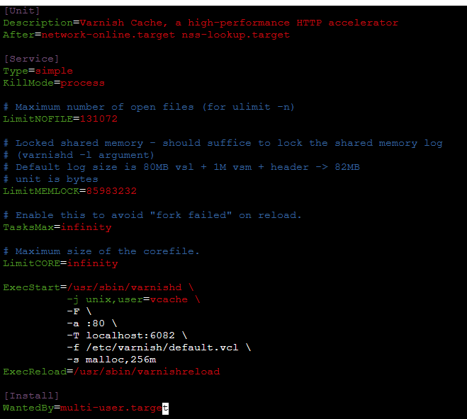 https://github.com/magento/magento2/blob/9544fb243d5848a497d4ea7b88e08609376ac39e/app/coYou need to change the Varnish start parameters in the systemd service definition as well. To do so, edit the line starting with ExecStart in the service definition file. Open the varnish.service file located under /usr/lib/systemd/system, and make sure the information matches the snapshot below: