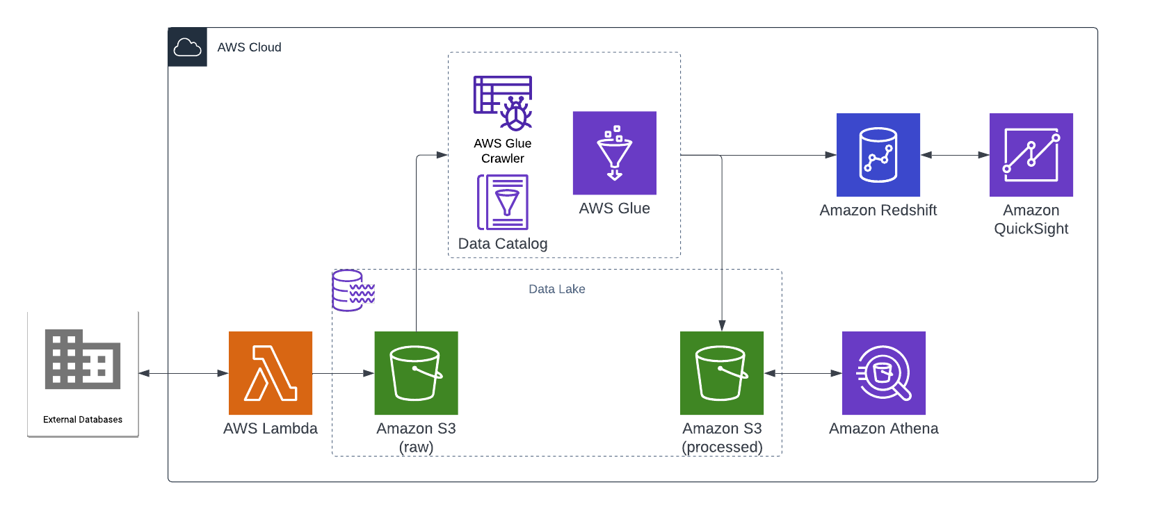 The automation of our solution is based on an AWS Lambda function daily trigger. Once the data is imported to our S3 data lake, another Lambda function is triggered that runs the glue workflow to crawl the data and process it. Athena and Quicksight are directly connected to the respective data sources which means they are online with them.