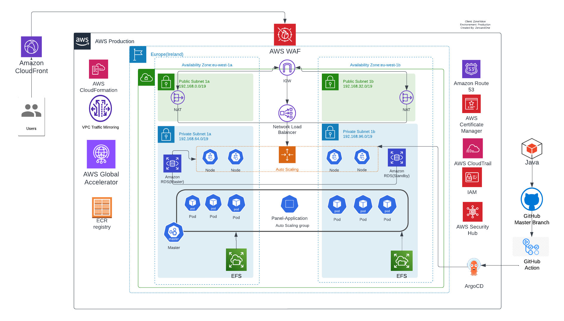 The existing architecture required no major redesign. The only addition was a GitHub Action pipeline integrated with ArgoCD to automate builds and deployments for the Java modernization. To accelerate every phase of the project, Zero&One drew on the AWS AI-Powered SDLC reference architecture from AWS Samples.